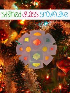 Faux Stained Glass Paper Snowflakes by Amanda Formaro of Crafts by Amanda