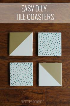 DIY Tile Coasters - This was so easy and plain white tiles cost 13 cents each at the hardware store! Super fun gift idea or for craft night!