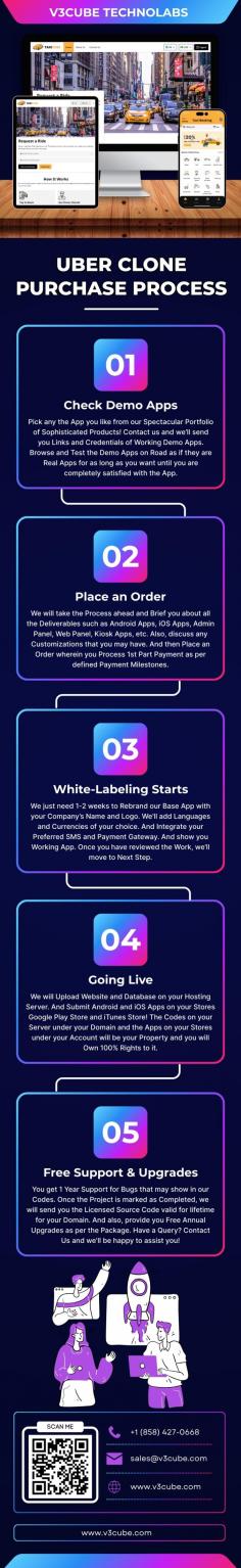V3Cube Technolabs Uber Clone Purchase Process Description: Understand the complete V3Cube Technolabs Uber Clone purchase process in a simple step-by-step flow. Learn how to launch your taxi app quickly and efficiently.