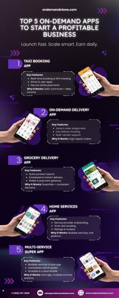 Top 5 On-Demand Apps to Start a Profitable Business Discover the top 5 on-demand apps to start a profitable business. Explore high-demand app ideas with proven revenue models.