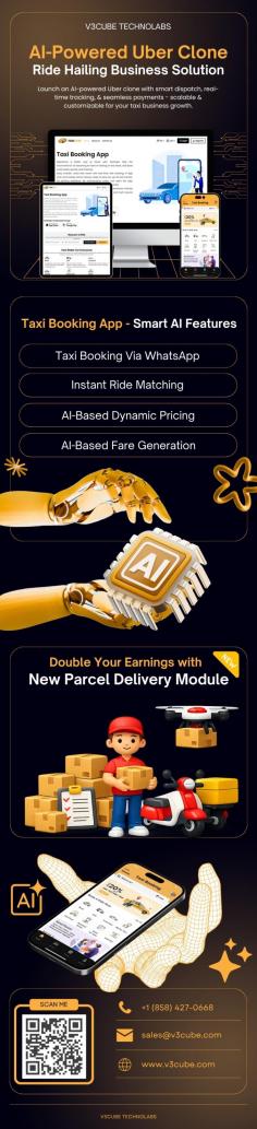 Launch your AI-powered Uber clone ride-hailing app with advanced features like smart dispatch, real-time tracking, fare estimation, and seamless payments. Scalable, customizable & ready to grow your taxi business.
