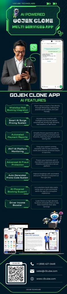 Launch your AI-powered Gojek Clone multi-services app in just 2 weeks. Offer 101+ on-demand services like taxi booking, food delivery, and home services with advanced features and scalable technology.