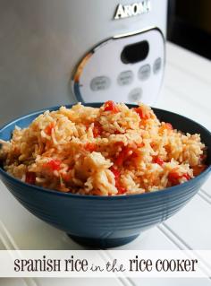 Spanish-Rice-in-Rice-Cooker* I made this to go along with our black bean soup (also a pin; check it out) and it was so delicious. We don't have Rotel tomatoes in Colombia, and I never ever used canned food - if a recipe calls for something canned, I make my own version homemade and use it in the recipe. Anyway, instead of the canned tomatoes, I diced up one tomato and a jalapeño (pickled, which is good for your digestion), and then put it a few huge spoonfuls of my homemade salsa (my dad's recipe). I also added much more cumin than the recipe called for.