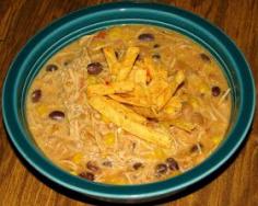 Shel's Kitchen: Copycat Chick Fil A Tortilla Soup* I only used northern beans, no black beans; I also didn't use taco seasoning, but used fresh cumin and garlic, and some chili powder instead. I only used one can of regular corn, no frozen corn, and a chopped up pepper grown in the back yard for extra spice. I mixed cream, cream cheese and milk instead of using half and half.