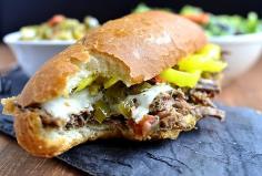 Crock Pot Italian Beef Sandwiches* So, I don't have all those yummy USA ingredients, so I made my own version. I cut up some pepperoncini peppers and poorer in some jalapeño juice, put half a package of onion soup, some vinegarette instead of Italian dressing, and then some beef broth. Bam. So delish. Towards the end, I added in half an onion and some red pepper to give it some color and veggies.