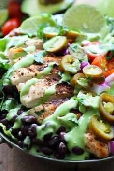 Grilled Chicken Taco Salads with Spicy Cilantro Lime Dressing - Creme De La Crumb