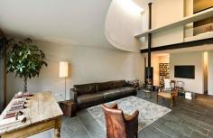 A modern structure with concrete and steel elements, raw wood kitchen cabinets, and a random mix of modern, rustic and industrial elements for the decor