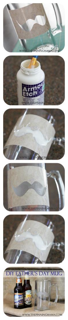 So easy!! Father's Day Gift DIY Glass Etched Mustache Mugs