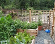 garden design with wooden fence and raised bed containers