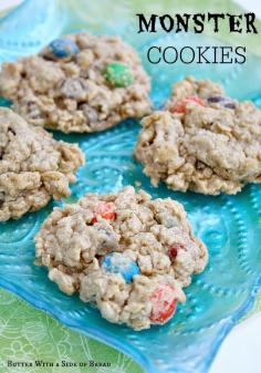 Monster Cookies~ peanut butter, oatmeal, chocolate chips AND M&M& #x27;s- all in one delicious cookie! Butter With A Side of Bread #recipe #cookies