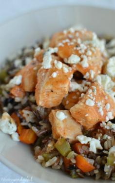 Buffalo Chicken Rice Bowl - Spicy Chicken with Carrots, Celery, Wild Rice and Blue Cheese. Easy & Delicious Dinner Recipe!