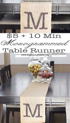 Who knew it was so easy?! $5 and 10 minutes to a custom monogrammed table runner!