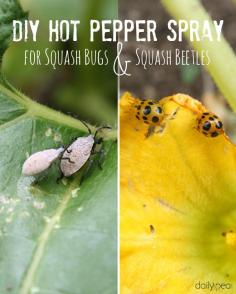 Here's a DIY hot pepper spray which is 100% safe and natural, that I spray directly on my cucumber and pumpkin vines to get rid of squash bugs and beetles.