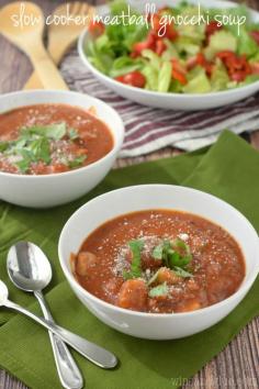 This Slow Cooker Meatball Gnocchi Soup is easy to throw together and so delicious and warm!