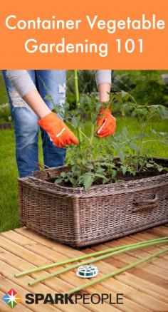 If you're short on space, want to create a unique look for your garden or don't have high-quality soil, you can still grow fruits and veggies! Here's what you need to know for a successful container garden. | via @SparkPeople #food #nutrition #vegetable