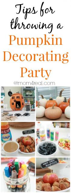 Tips for throwing a Pumpkin Decorating Party and tons more pumpkin decorating ideas at mom4real.com