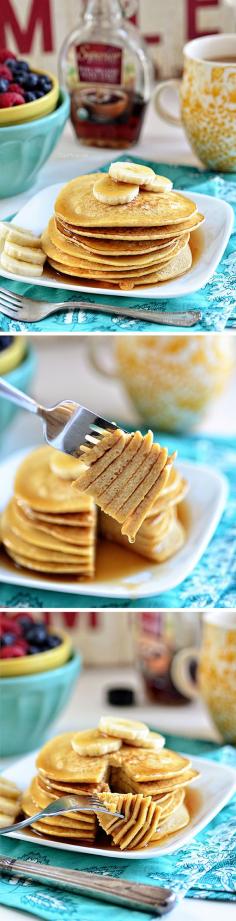 Diety-friendly Oatmeal Banana Bread Pancakes - just 3 ingredients! recipe at TidyMom.net