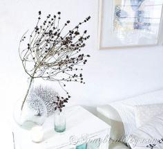 simple, easy and beautiful Fall decoration with skeleton plants in glass vases. Fall with a bith of coastal style.
