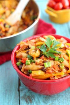 One Skillet Chicken Enchilada Pasta Dish