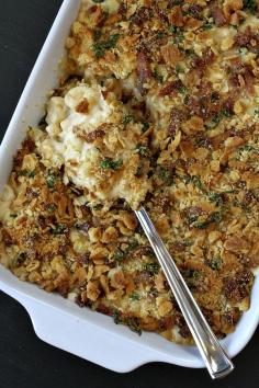 This simple Macaroni and Cheese recipe is topped with Bacon- Ritz Cracker Crumbs and baked until golden brown. Photographs included.