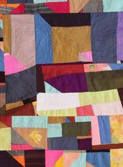 From Dosa Glossary on Quilting: For a project in 2004, dosa fabric off-cuts sorted in a Korean color palette were recomposed in new color combinations and visually transformed by noted African-American improvisational quilter Laverne Brackens. The quilts were then passed on to the Shuktara charity in India, where they were backed in Indian cotton and finished like Indian kantha. (1997)