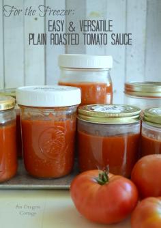 Easy and Versatile Plain Roasted Tomato Sauce for the Freezer - recipe at www.anoregoncotta... #preserving #tomatorecipes