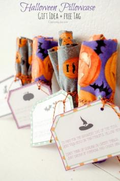 How to make a halloween pillowcase with free printable gift tag for the kids for the month of October. Fun gift idea for friends, too. Capturing-Joy.com
