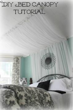 This is such a creative Master Bedroom idea - check out this romantic bed canopy out of curtains. Click here to see the tutorial.