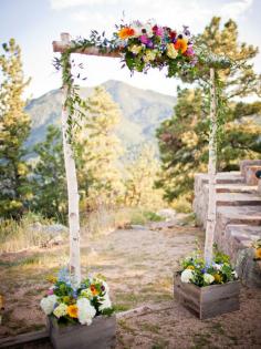 This simple, rustic ceremony arch perfectly complements a gorgeous natural backdrop.