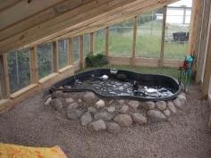 This is an ideal duck pen. Really wish we could do this. Raised duck pond then drain the water to use in the garden!
