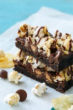 Loaded Junk Food Brownies with potato chips, kettle corn, and peanut butter cups.
