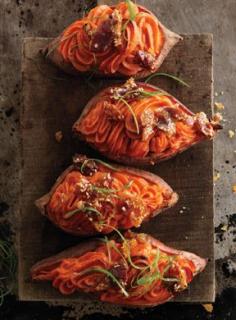 Twice-Baked Sweet Potatoes with Bacon-Sesame Brittle
