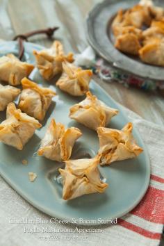 Cheddar, Blue Cheese and Bacon Stuffed Phyllo Mushroom Appetizers from thelittlekitchen.net