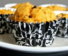 Recipe for 3-Ingredient Pumpkin Chocolate Chip Muffins (no oil, no eggs)