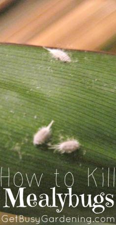Do your houseplants have bugs? A mealybug infestation looks like cotton or white powder on the stems, leaf joints or along the veins of houseplant leaves (and they are my nemesis). Learn more about these nasty houseplant pests, and most importantly, How to Kill Mealy Bugs | GetBusyGardening.com