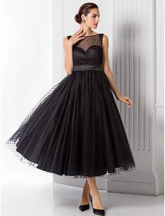 A-line/Princess Bateau Tea-length Tulle Evening Dress