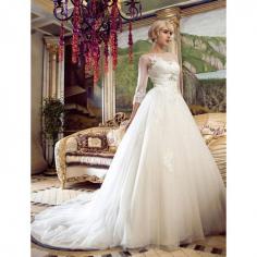 A-line Princess Bateau Sweep/Brush Train Tulle Wedding Dress