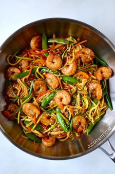 Asian Zucchini Noodle Stir-Fry with Shrimp