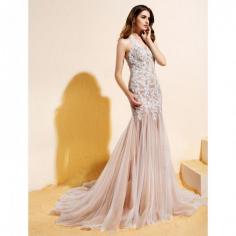 A-line/Princess Halter Court Train Lace And Tulle Wedding Dress, dresses, gorgeous dress, weddings, wedding attire, for the girls