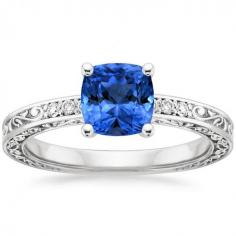 Sapphire Delicate Antique Scroll Diamond Ring in 18K White Gold, 6x6mm Cushion Blue Sapphire, gorgeous ring, diamonds, jewelry, jewels