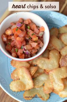 Heart Chips & Salsa are the perfect Valentine's Day snack or appetizer, for your family or party guests. Crispy, crunchy, and delicious, plus easy to make!