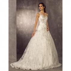 A-line Princess One Shoulder Sweep/Brush Train Lace Weddimg Dress, dresses, lacy