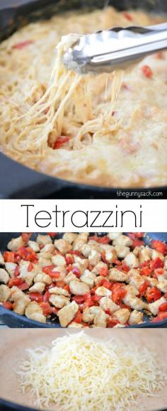 This easy Chicken Tetrazzini recipe is perfect for family dinners. This skillet recipe can be made in 30 minutes! #client