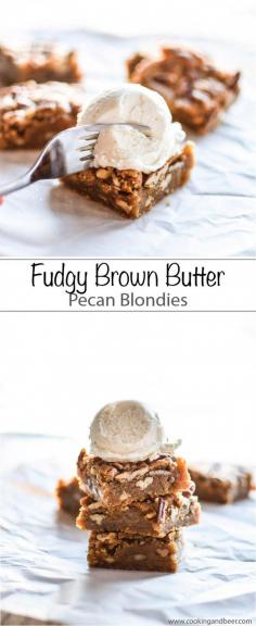 The perfect dessert: These Fudgy Brown Butter Pecan Blondies are the perfect sweet treat! | www.cookingandbee...