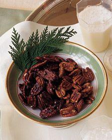 Appetizer #2 ~ Martha Stewart Spicy Pecans: Ingredients: 1 tablespoon coarse salt 2 tablespoons cayenne pepper 1 1/2 teaspoons paprika 1/2 cup sugar 2 large egg whites 5 cups (20 ounces) pecans