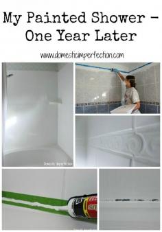 This woman painted her shower, here's how it's holding up after a year of use! (Also includes link to original tutorial.)