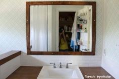 DIY mirror frame using wood flooring and hex screws