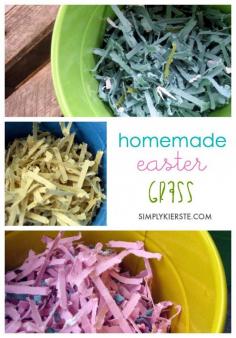 Homemade Easter grass is adorable, easy and quick to make, inexpensive, and can be made in any color you like!