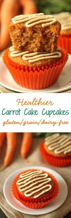 Moist, lightly sweetened with honey and even a little fluffy, these grain-free and gluten-free healthier carrot cake cupcakes (or muffins!) are the perfect Easter treat. With a dairy-free option