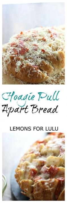 All the best part of a hoagie sandwich stuffed into a cheesy pull apart bread! lemonsforlulu.com ~ www.lemonsforlulu...